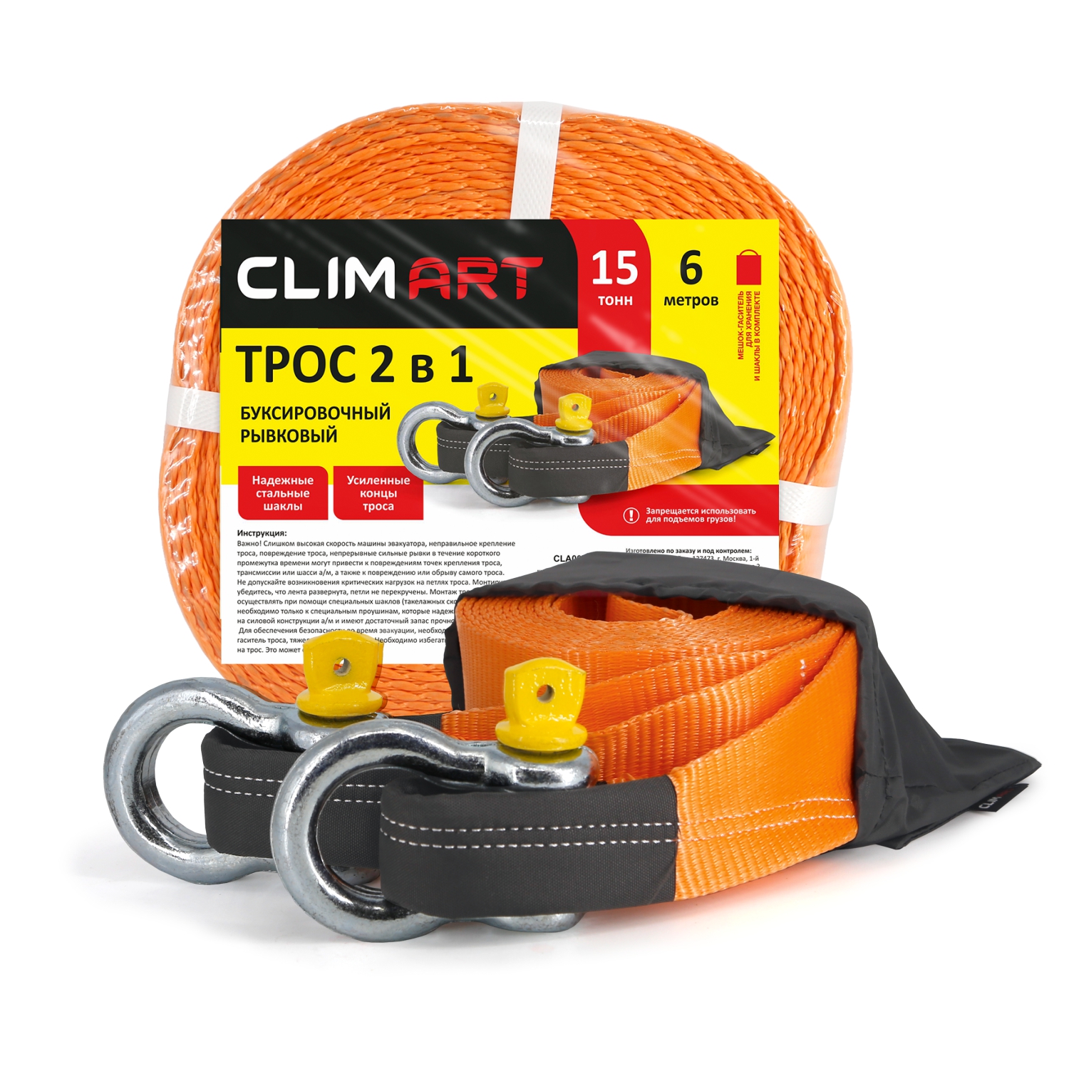 Трос 2 в 1 CLIMART предназначен для рывкового вытягивания застрявшего автомобиля и буксировки неисправного, поэтому он может использоваться как буксировочный трос и как динамическая стропа. Такой аксессуар станет незаменимым помощником водителя в условиях бездорожья и в аварийных ситуациях.
